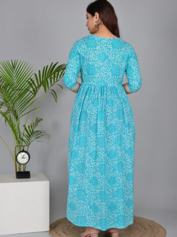 Sale 100%Ashvy Sky Blue Bel Print Cotton Maternity Kurti – Soft Anarkali Feeding Wear for Moms