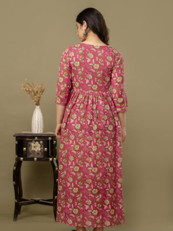 Sale 100%Ashvy Rani Floral Cotton Feeding & Maternity Kurti – Elegant Anarkali Design with Hidden Zips for Nursing Moms