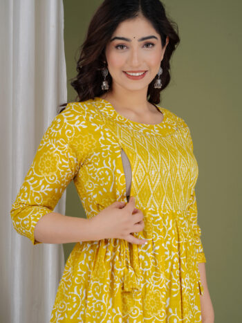Sale 100%Ashvy Mustard Yellow Cotton Nursing Kurti – Comfortable Maternity Wear for Pregnant & New Moms