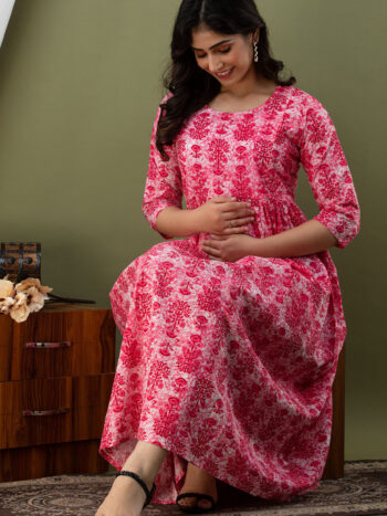 Sale 100%Ashvy Feeding Gown – Cotton Maternity Outfit for Moms (Rani Pink)