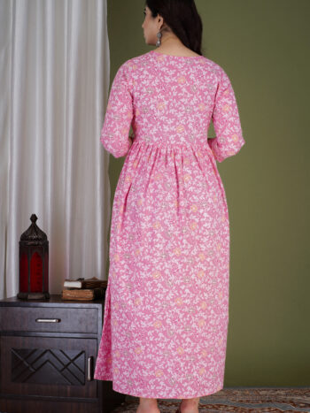 Sale 100%Ashvy Light Pink Cotton Nursing Kurti – Soft Floral Maternity & Feeding Wear for Moms