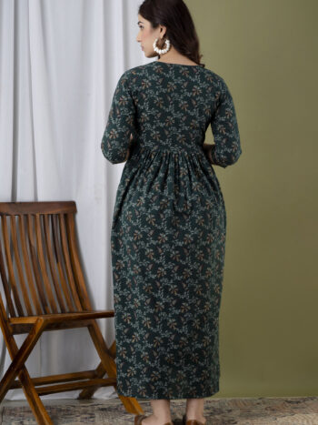Sale 100%Ashvy Green Gold Rayon Cotton Nursing Kurti – Elegant Maternity & Motherhood Wear