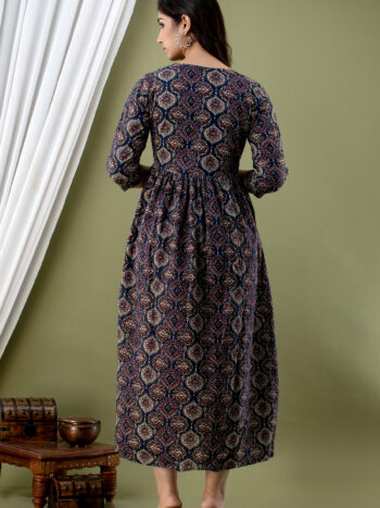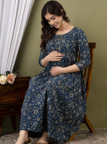Sale 100%Ashvy Pure Cotton Maternity Kurti – Feeding Friendly Style for Comfort & Elegance (Indigo)