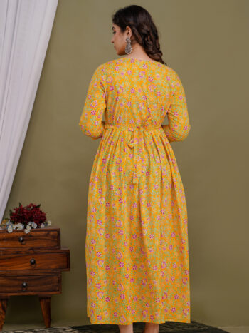 Sale 100%Ashvy Premium Cotton Anarkali Maternity & Feeding Kurti for Women – 48 Inch Length, 2 Side Zips, Comfortable Nursing Wear for Moms (Yellow)