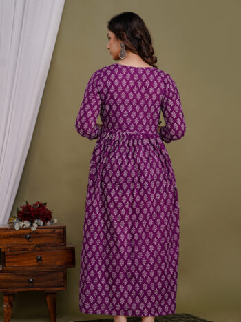 Sale 100%Ashvy Nursing Friendly Cotton Kurti – Elegant Pregnancy & Postpartum Wear (purple)