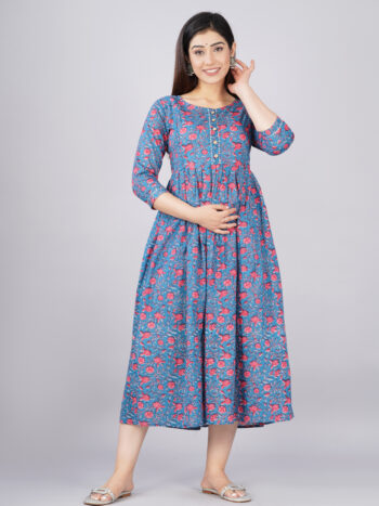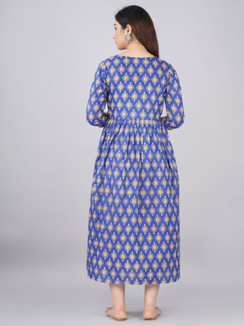Sale 100%Ashvy Pure Cotton Maternity Dress Blue golden Printed – Comfortable & Breathable Feeding Kurti