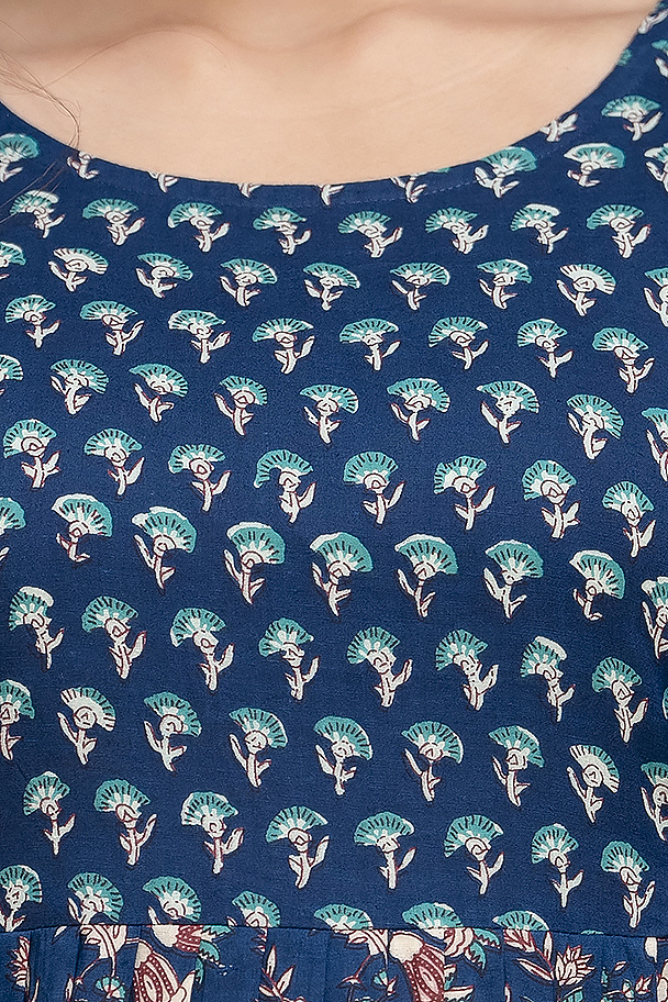Perfect for daily wear, casual outings, or lounging at home, this Blue Floral Printed Feeding Kurti brings together comfort, practicality, and effortless grace — ideal for modern moms.