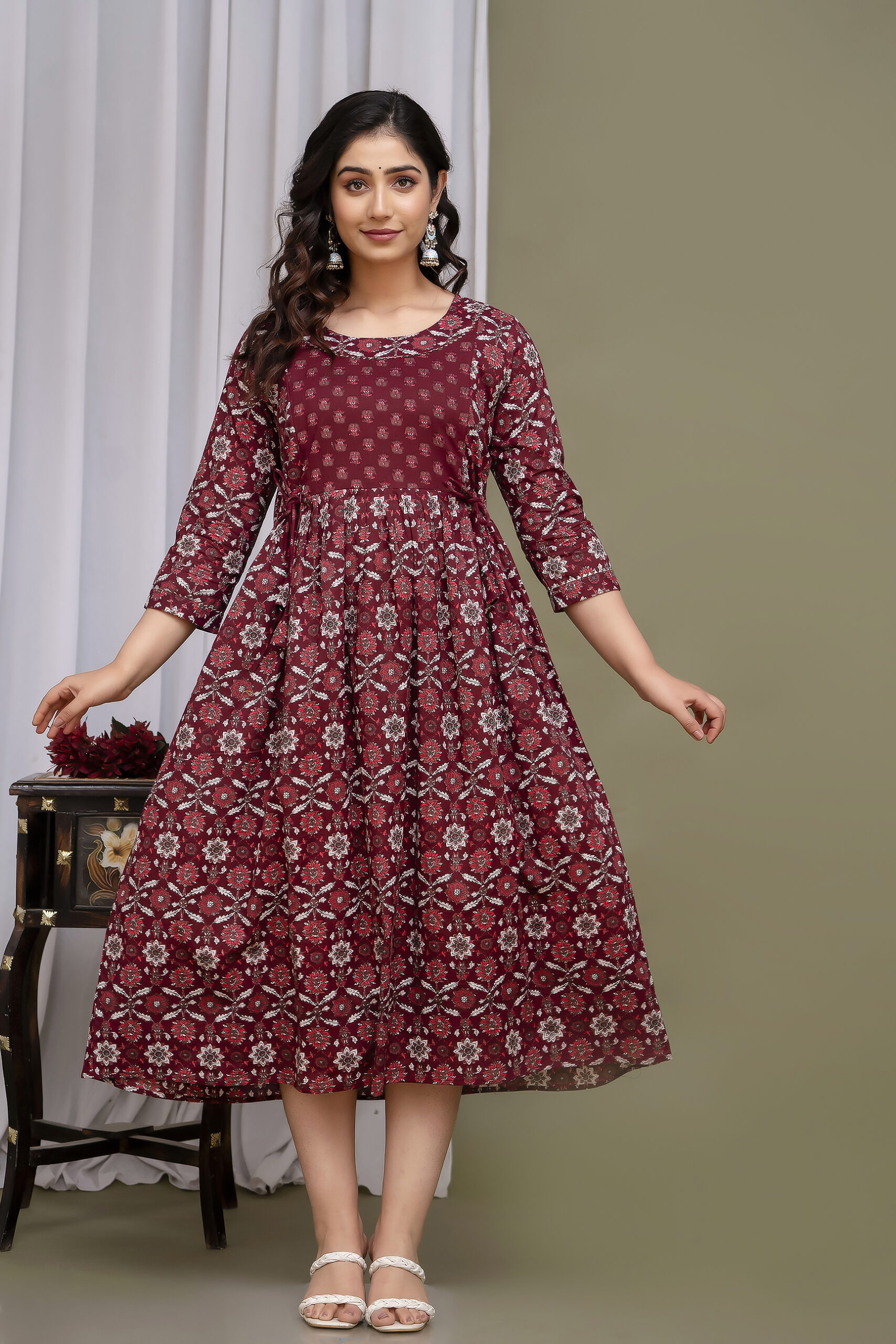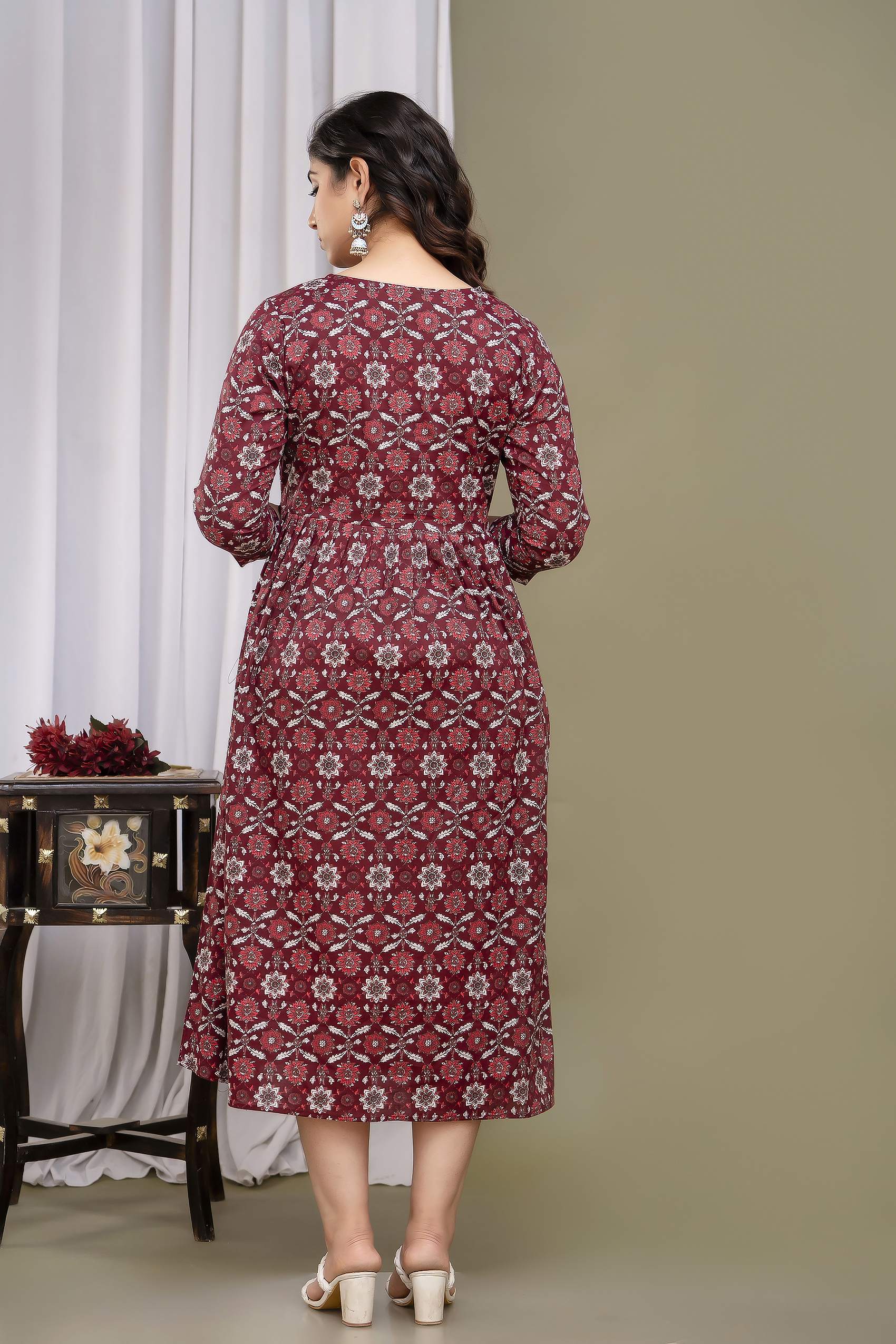 Color: Maroon with Floral Print – rich, elegant & timeless