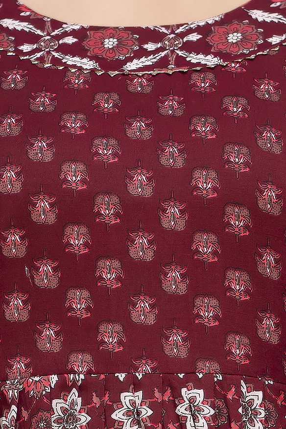 Ashvy Cotton Feeding Kurti for New Moms – Comfortable Anarkali Maternity Wear (Maroon Floral Print)