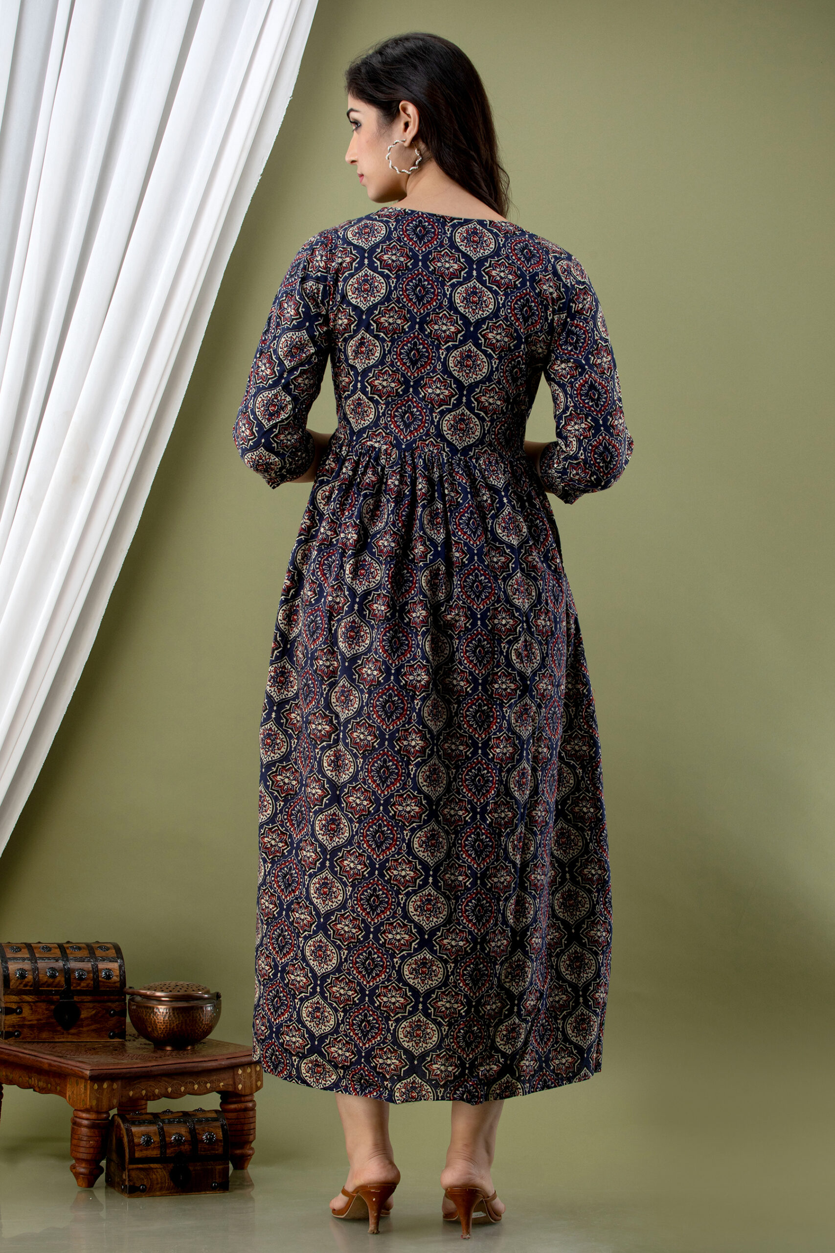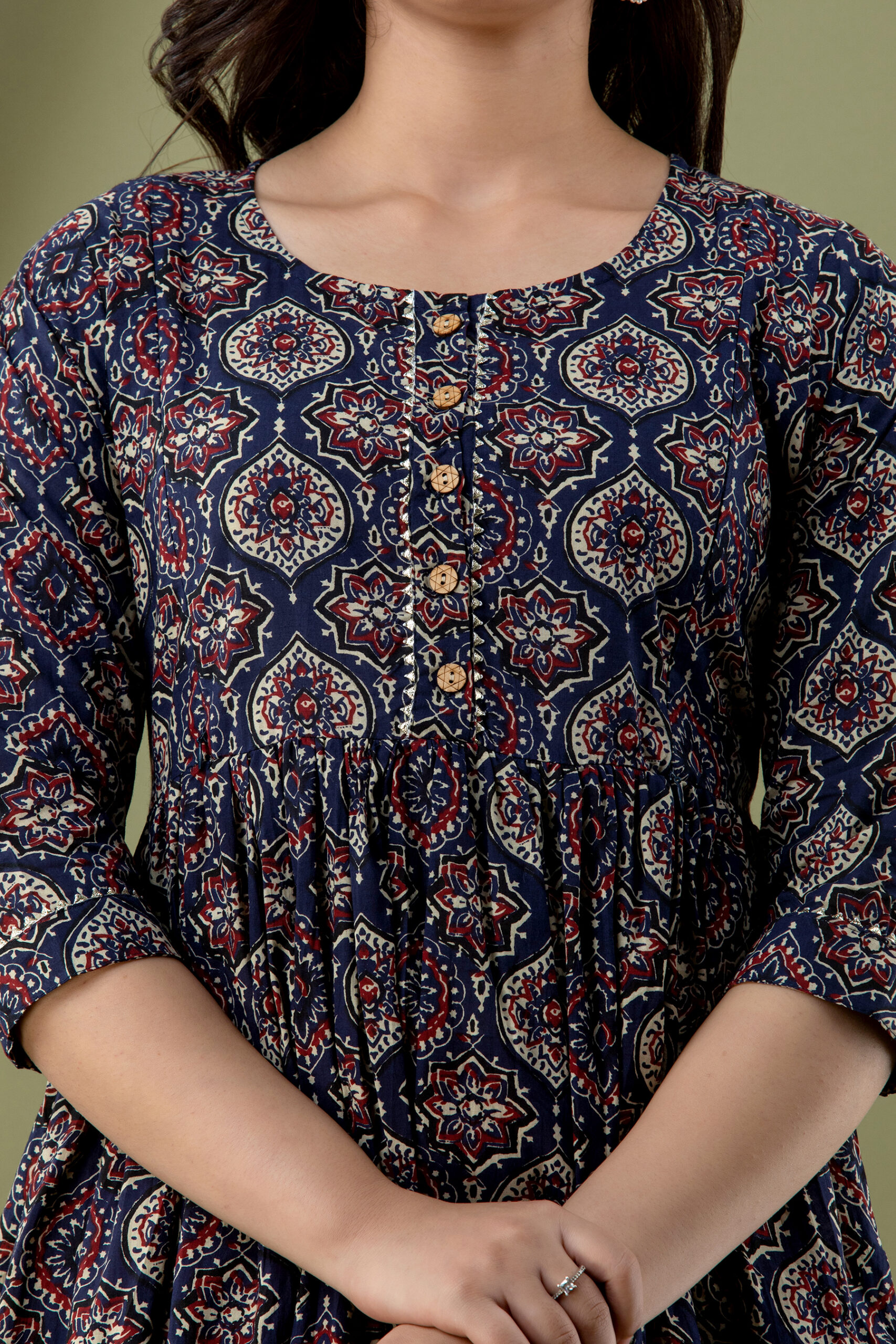 Stay elegant and comfortable with Ashvy’s Dark Blue Cotton Anarkali Kurti — a perfect blend of style, softness, and nursing convenience for moms.