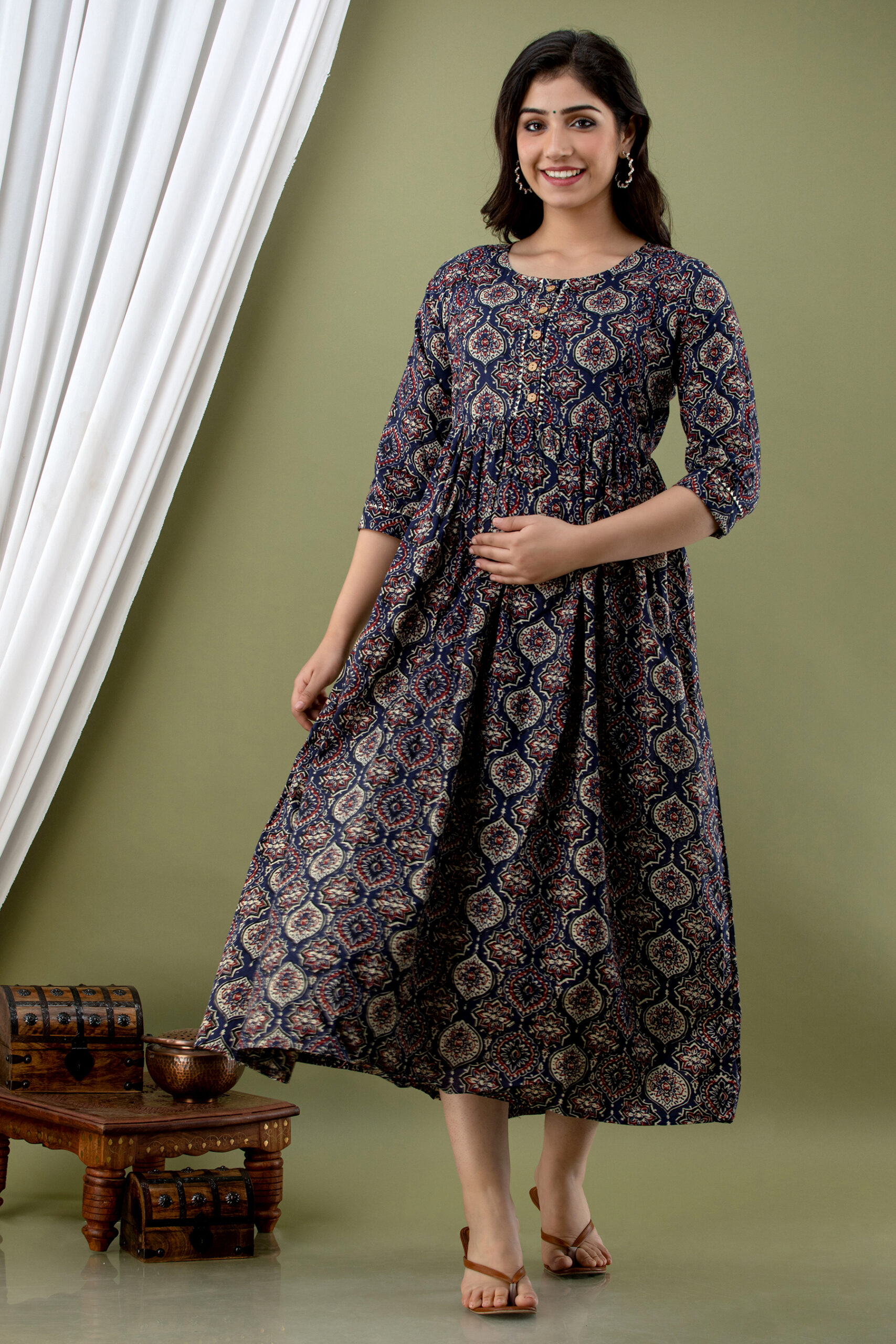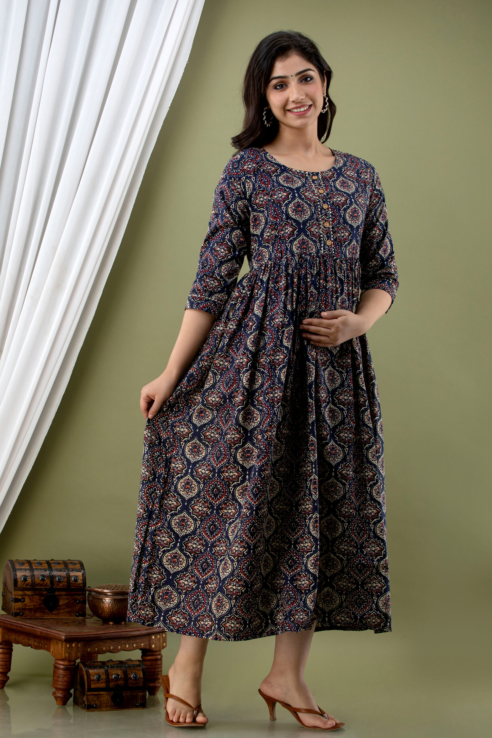 Ashvy’s Navy Blue Cotton Feeding Kurti combines modern elegance, soft maternity comfort, and practical nursing convenience — making it the go-to choice for moms who value comfort without compromising on style.