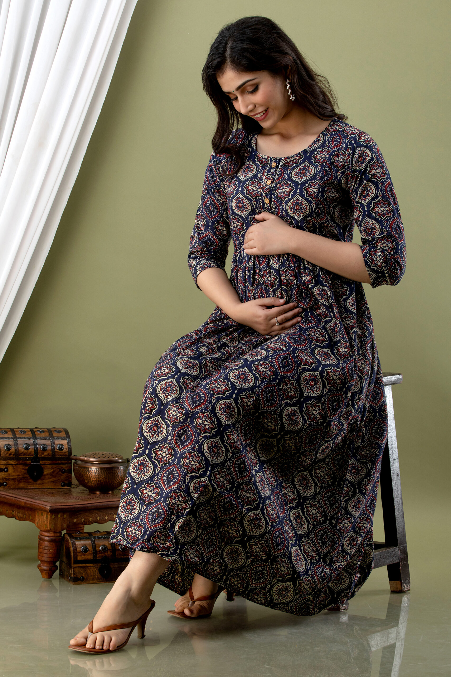 Style: Anarkali-inspired with relaxed pleats for maternity comfort