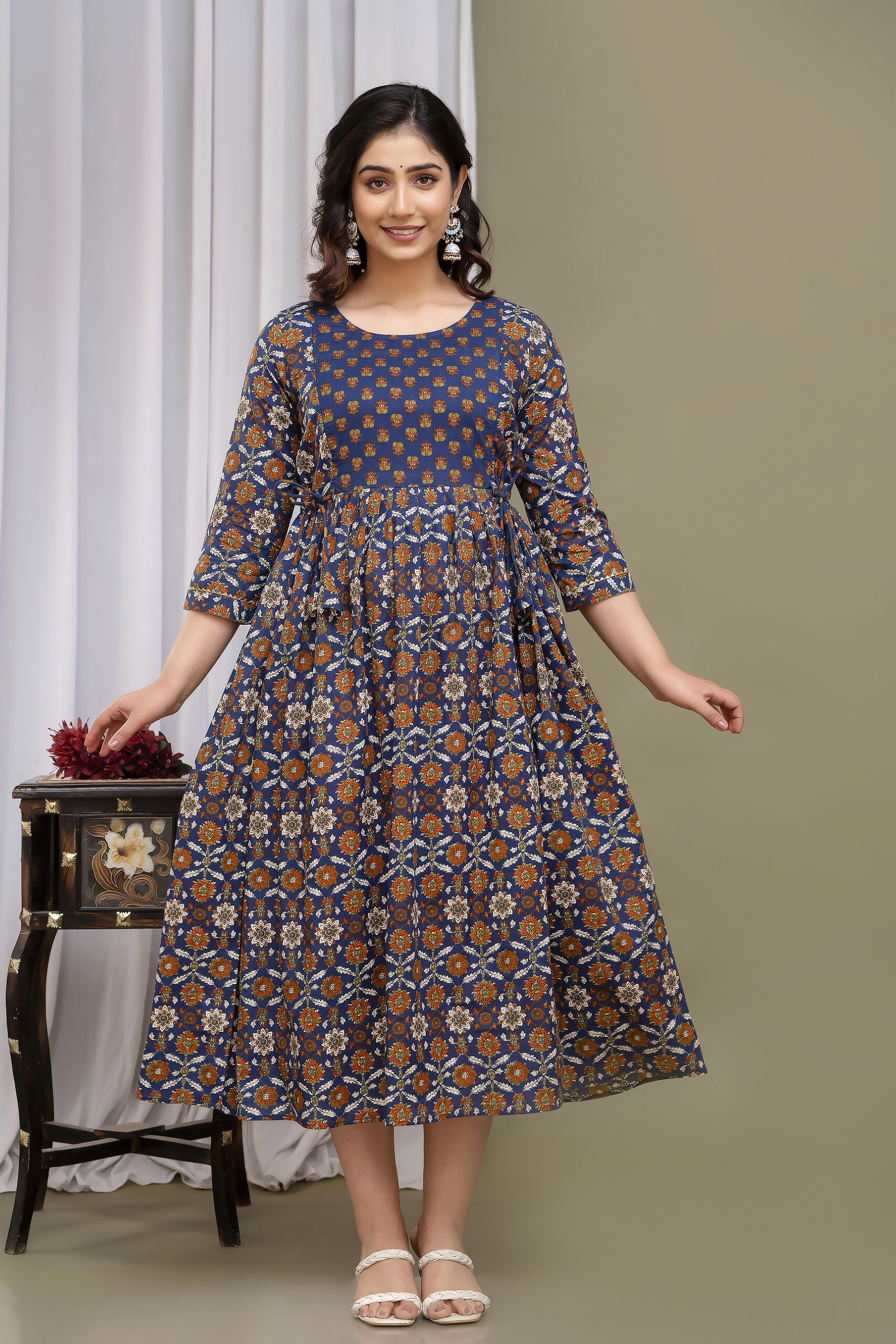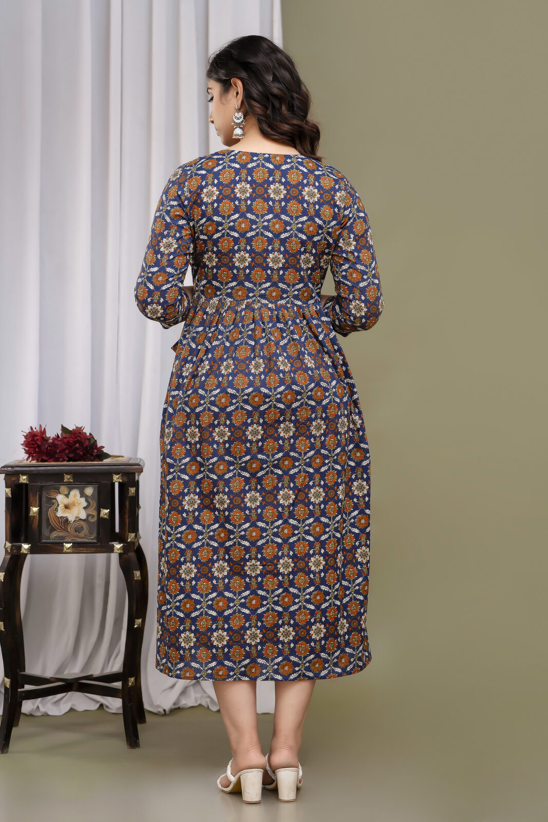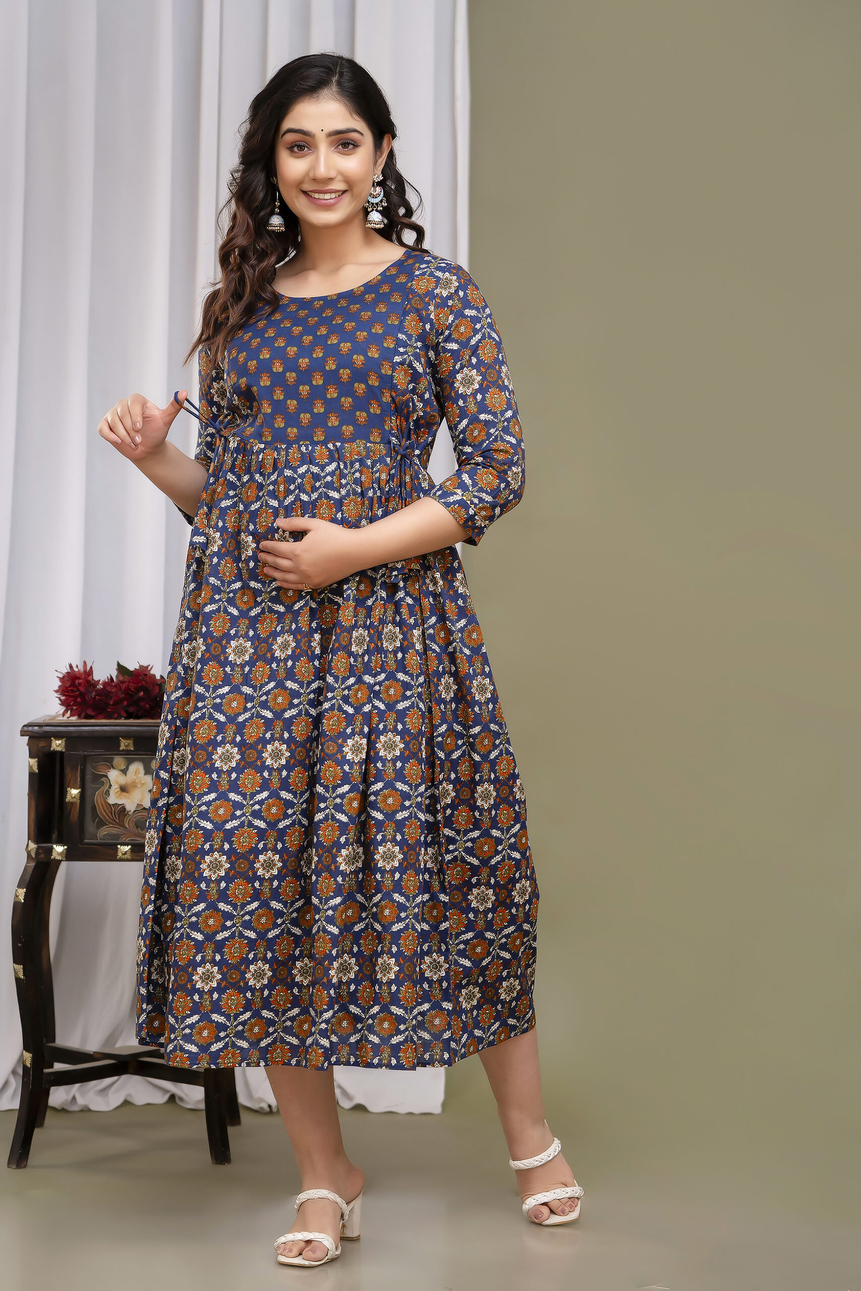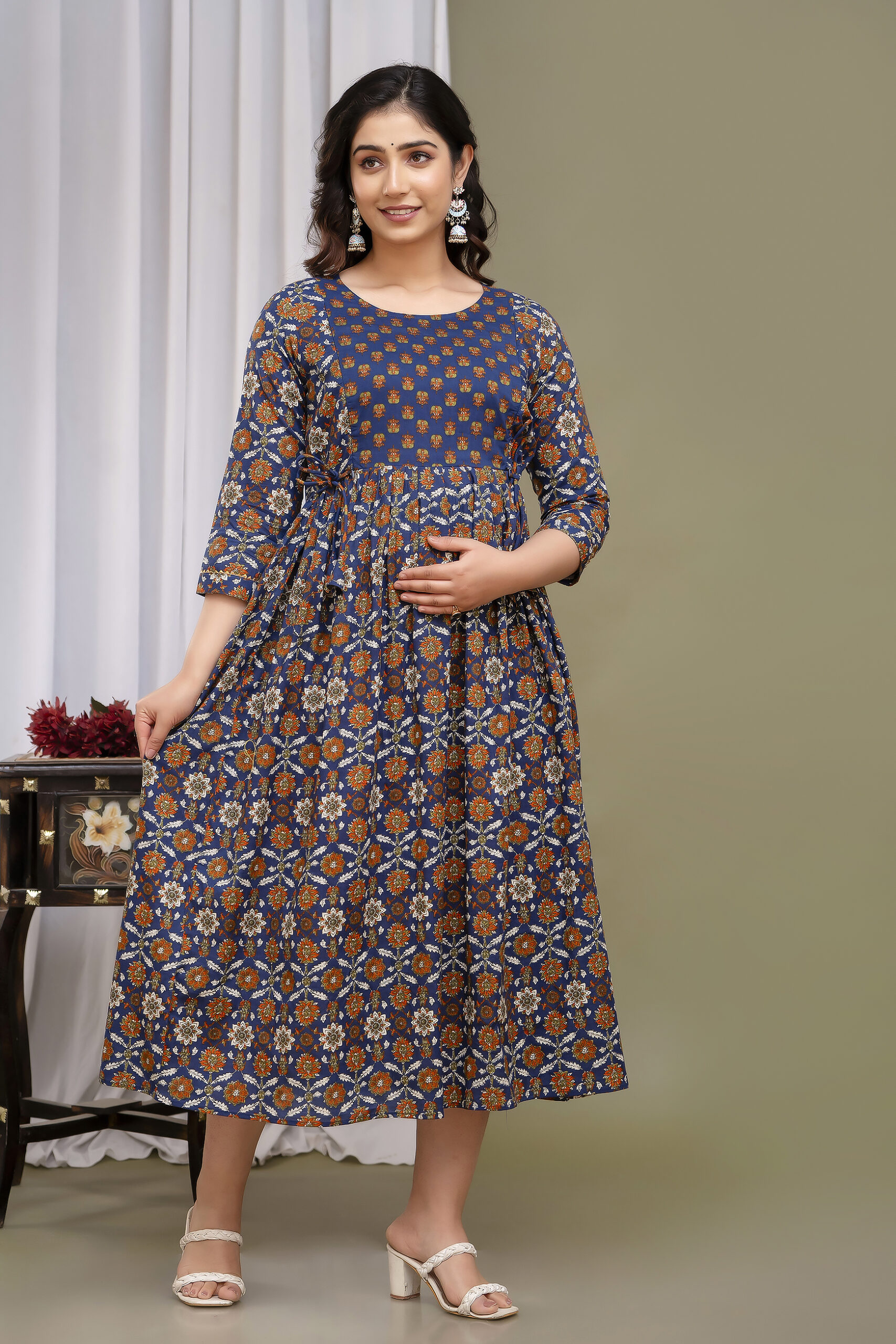 Ashvy India Navy Blue Floral Print Cotton Maternity Maxi Dress – 2051