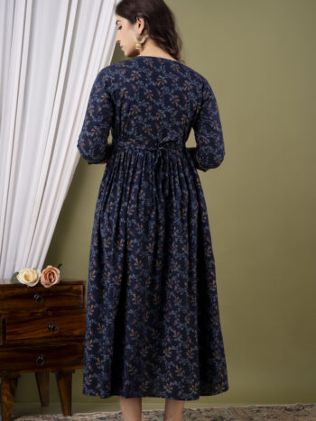Sale 100%Ashvy Blue Pink Floral Cotton Feeding & Maternity Kurti – Soft Anarkali Design with Hidden Zips for Nursing Moms