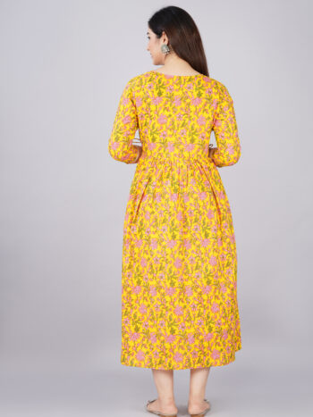 Sale 100%Ashvy 100% Cotton Maternity Kurti – Stylish Pregnancy & Nursing Wear for Moms(Yellow)