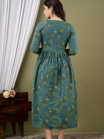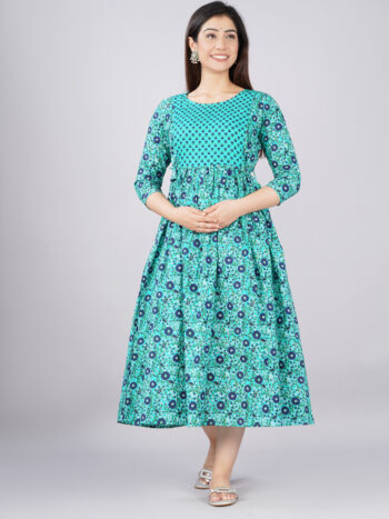 Sale 100%Ashvy Cotton Feeding Kurti for New Moms – Comfortable Anarkali Maternity Wear (Blue Floral Print)Compare
