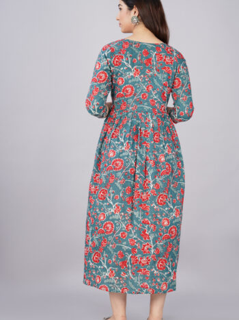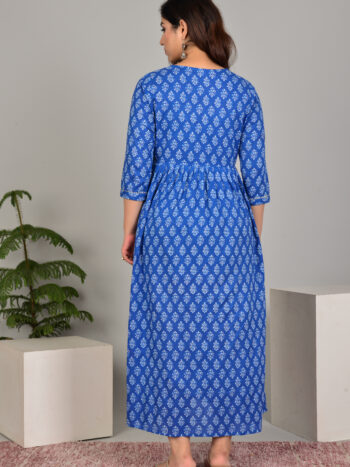 Sale 100%Ashvy Soft Cotton Maternity Kurti with Dual Zips – Anarkali Style Feeding Gown(Royal Blue)